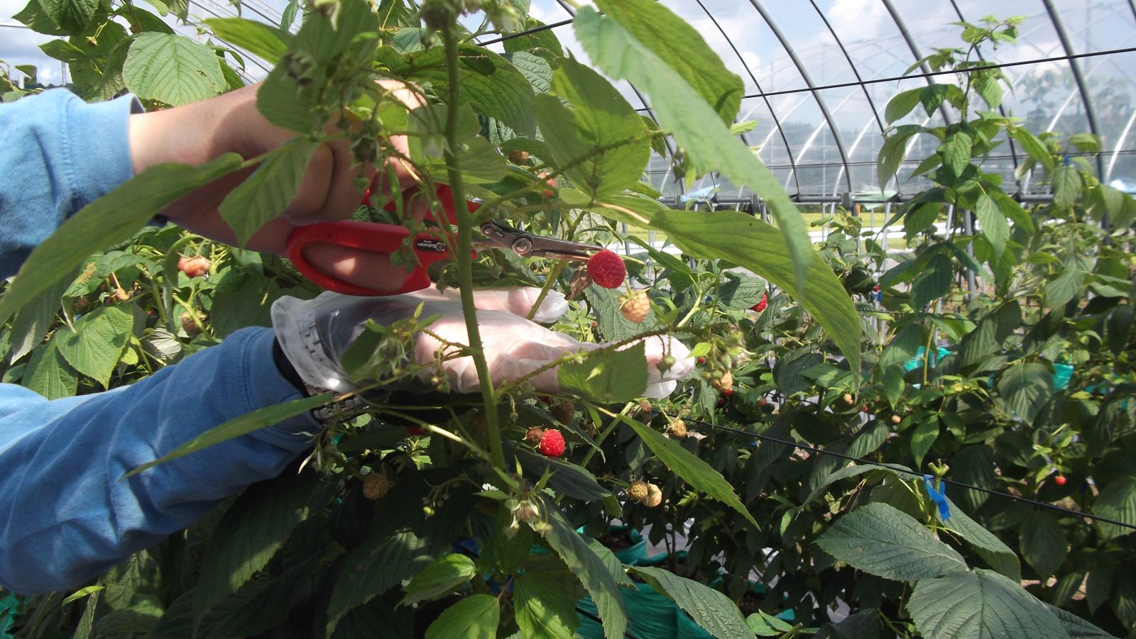 キイチゴ(ラズベリー)は実が軽いため女性や高齢者の方でも扱いやすく、収穫時期も夏果が6月下旬~7月、秋果が8月中旬~11月頃までと水稲栽培に加える品目としても取り組みやすい作物です。