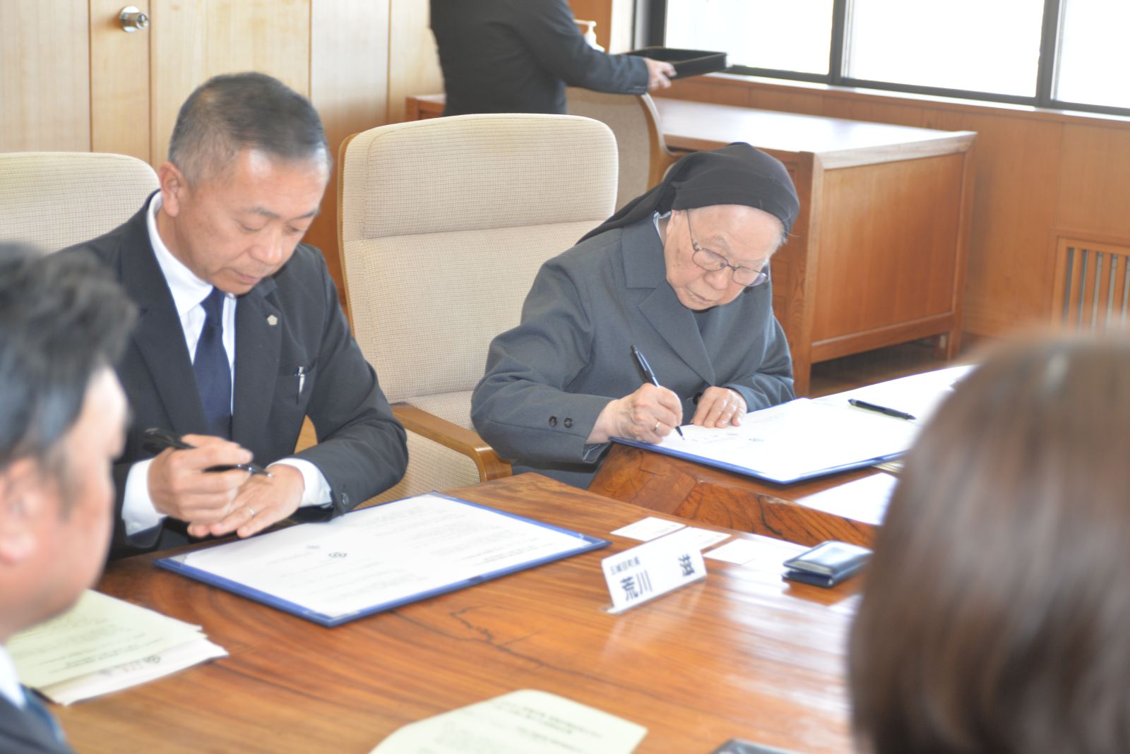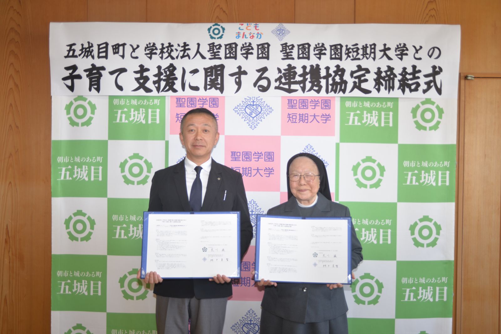 五城目町は、令和8年4月13日(月)に、学校法人聖園学園 聖園学園短期大学(門戸美智学長)と地域の子育て活動支援に関する連携で合意し、連携協定を締結いたしました。