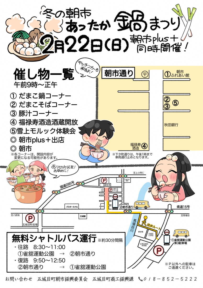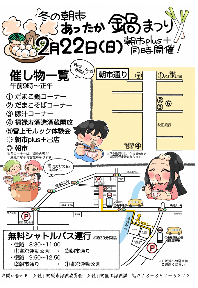 2月22日 日曜日は、冬の朝市「あったか鍋まつり」!